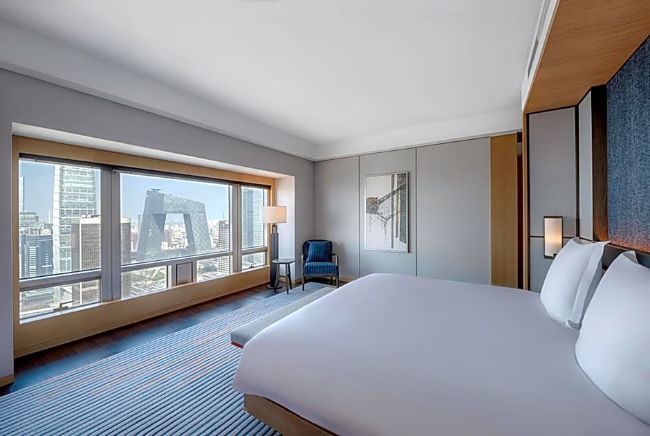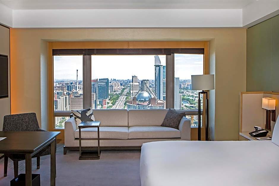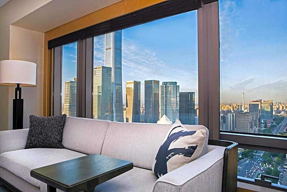 Relish in magnificent panoramic views of Beijing’s CBD and the iconic CCTV Tower from the Park View Room, equipped with a PM2.5 air purification system. All Park View Rooms emanate a unique blend of modernity and comfort, designed in a soft and neutral color palette. Each 45 square-yard room features an open bathtub concept, and a king bed with 400-thread-count linens and down duvet, a large 55-inch interactive smart TV. Universal power adapter outlets and Internet broadband access provide the convenience of a home away from home.