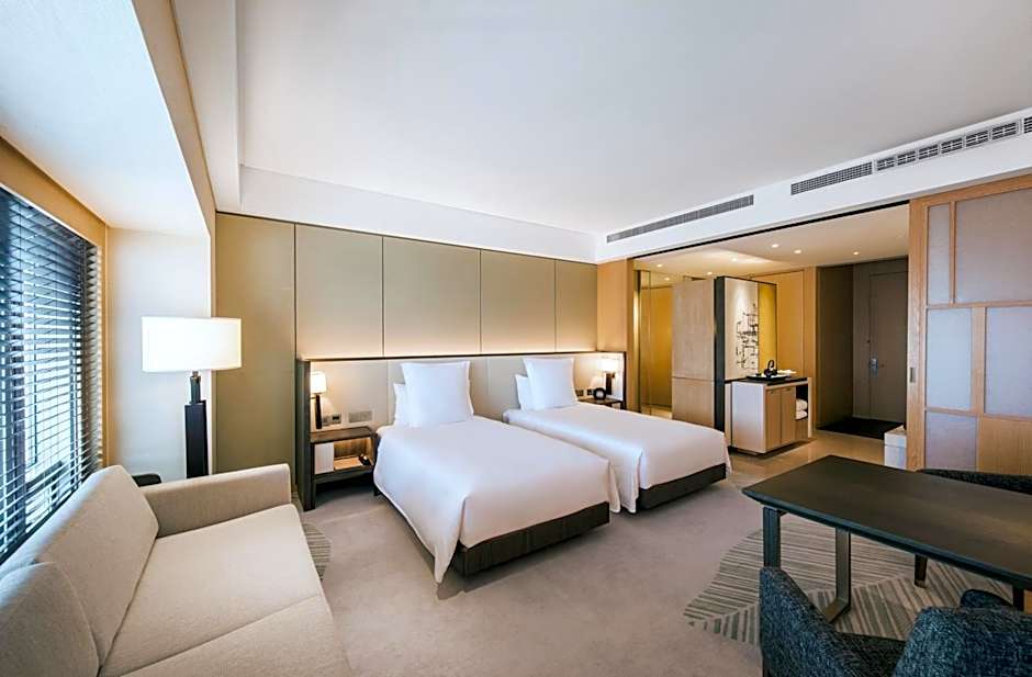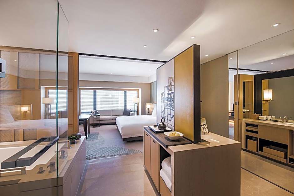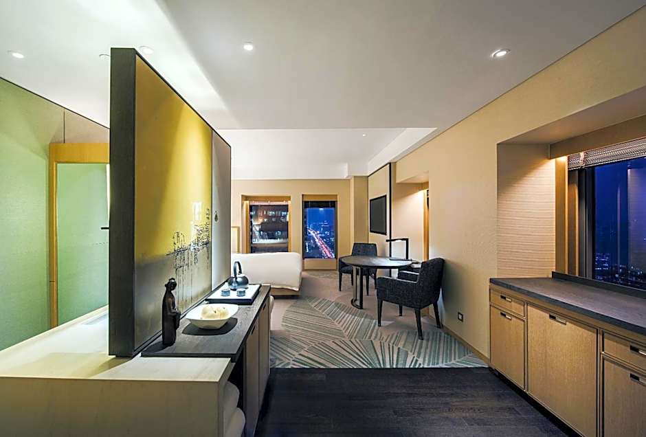 Breathe safe and clean air with the equipped PM2.5 air purification system in your room. Boasting views of CBD, the luxuriously appointed Park Room emanates a unique blend of modernity and comfort. The room is designed in a soft and neutral color palette. Each 45 square-yard room features a bathtub, a king or twin bed with 400-thread-count linens and down duvet, and a large 55-inch interactive smart TV. Universal power adapter outlets and Internet broadband access provide the convenience of a home away from home.