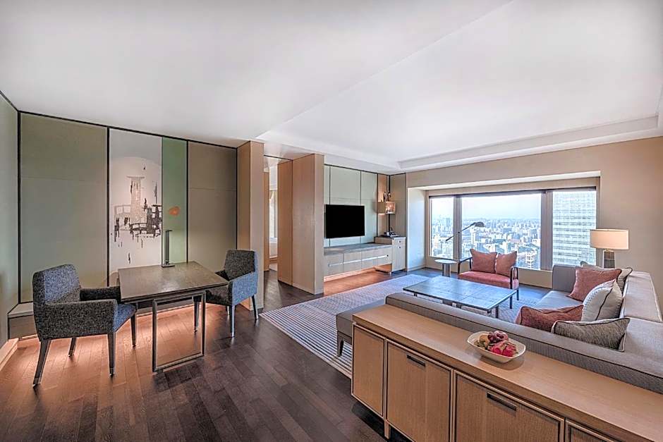 Unfold unique experiences with a stay in the suite, equipped with a PM2.5 air purification system. With a design that encapsulates spirit and grace, the suite exudes an opulent feel with large windows that offer magnificent views of Beijing. The stylish suite provides 85 squares yards of space decorated with a warm color palette of creams and light browns. Enjoy convenience with a separate master bedroom and a spacious living room with a large 55-inch interactive smart TV and Bose sound system. Internet broadband access provides the convenience of a home away from home. Separate work and play in the comfort of your suite effortlessly. A dedicated butler is available to assist with your needs at any time.